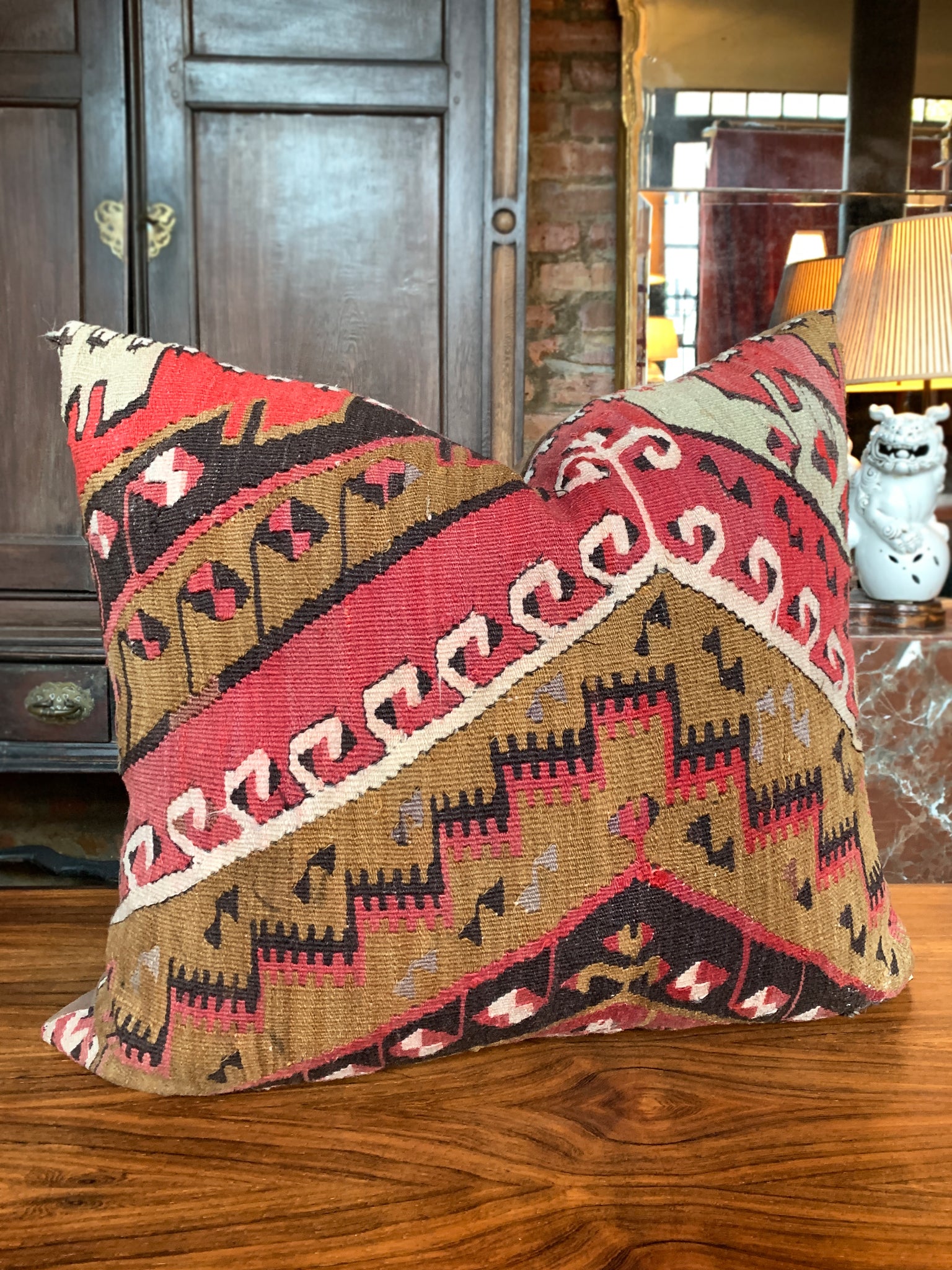 Custom Red & Tan Kilim Pillow