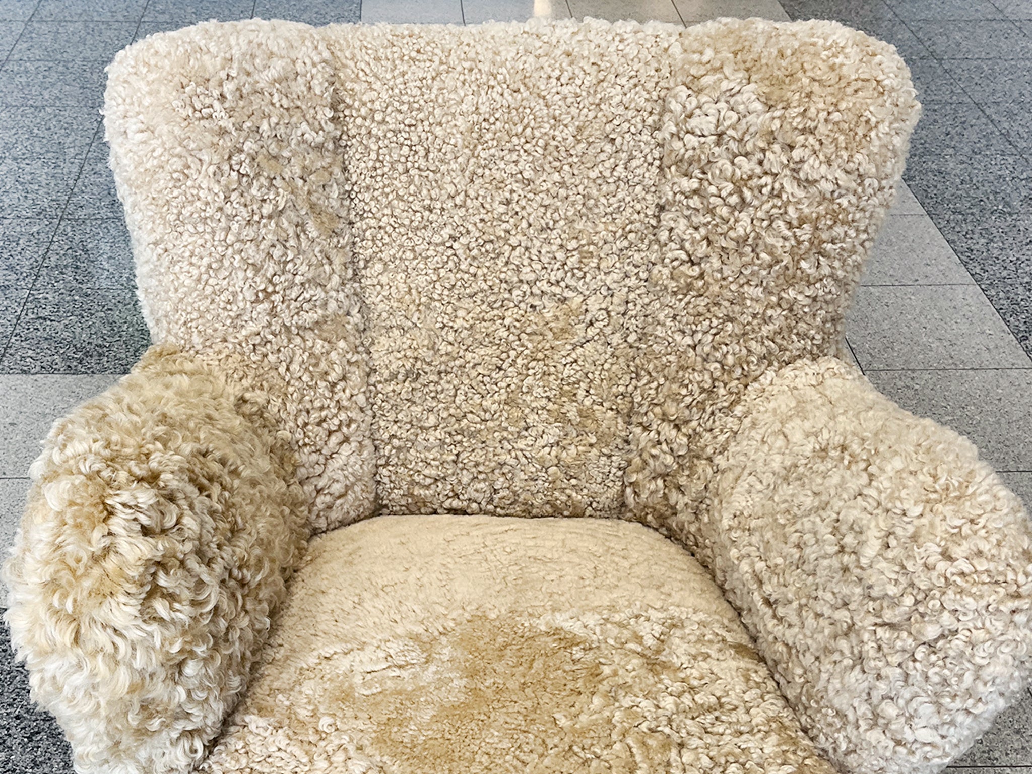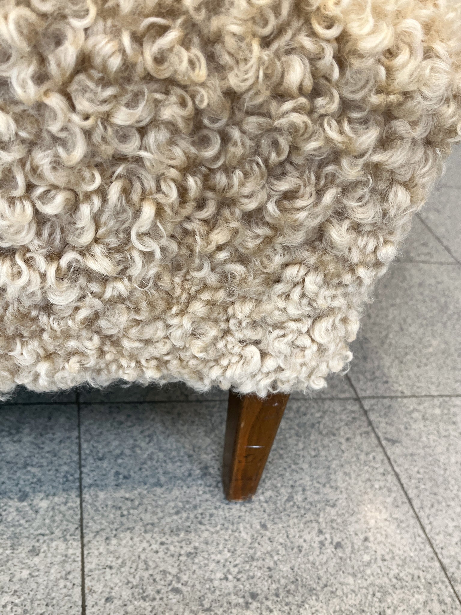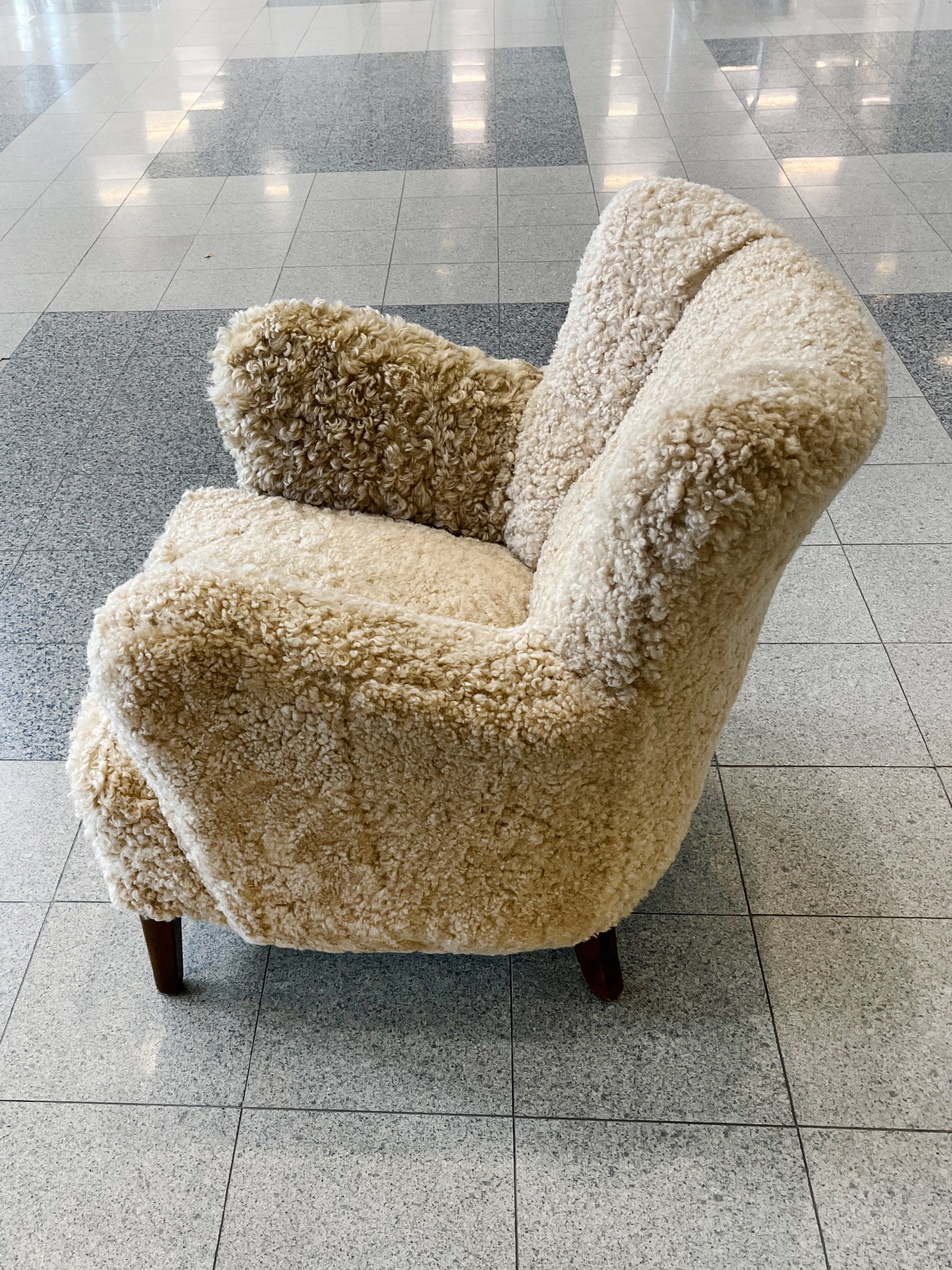 Danish Modern Lounge Chair in Shearling in the Style of Fritz Hansen