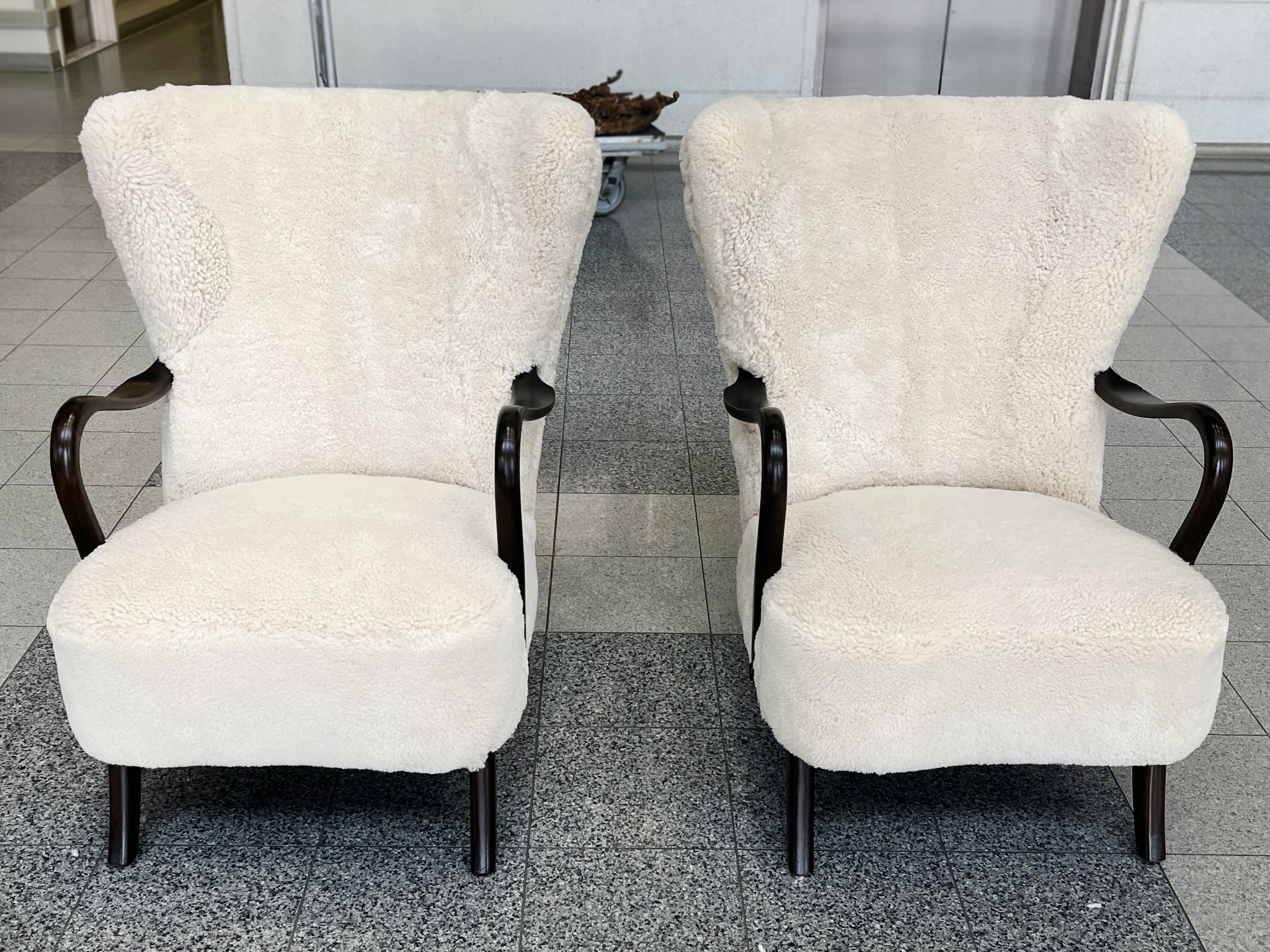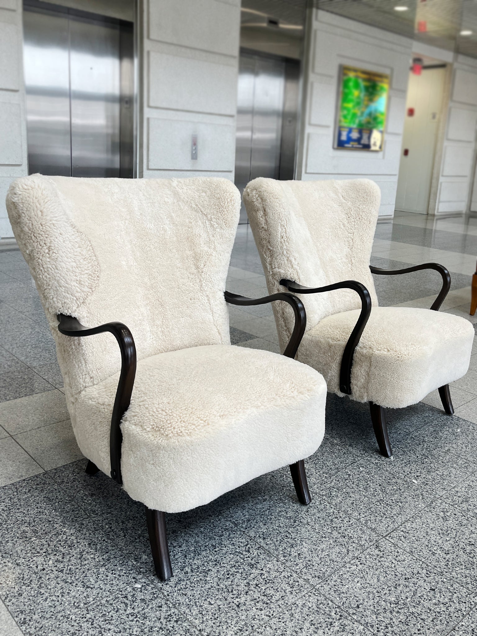 An exquisite pair of antique, handcrafted French Empire armchairs - reimagined in brown vegan leather and silk velvet leopard print. The chairs were originally made in the Early to Mid 19th Century and consist of mahogany frames. They have been...