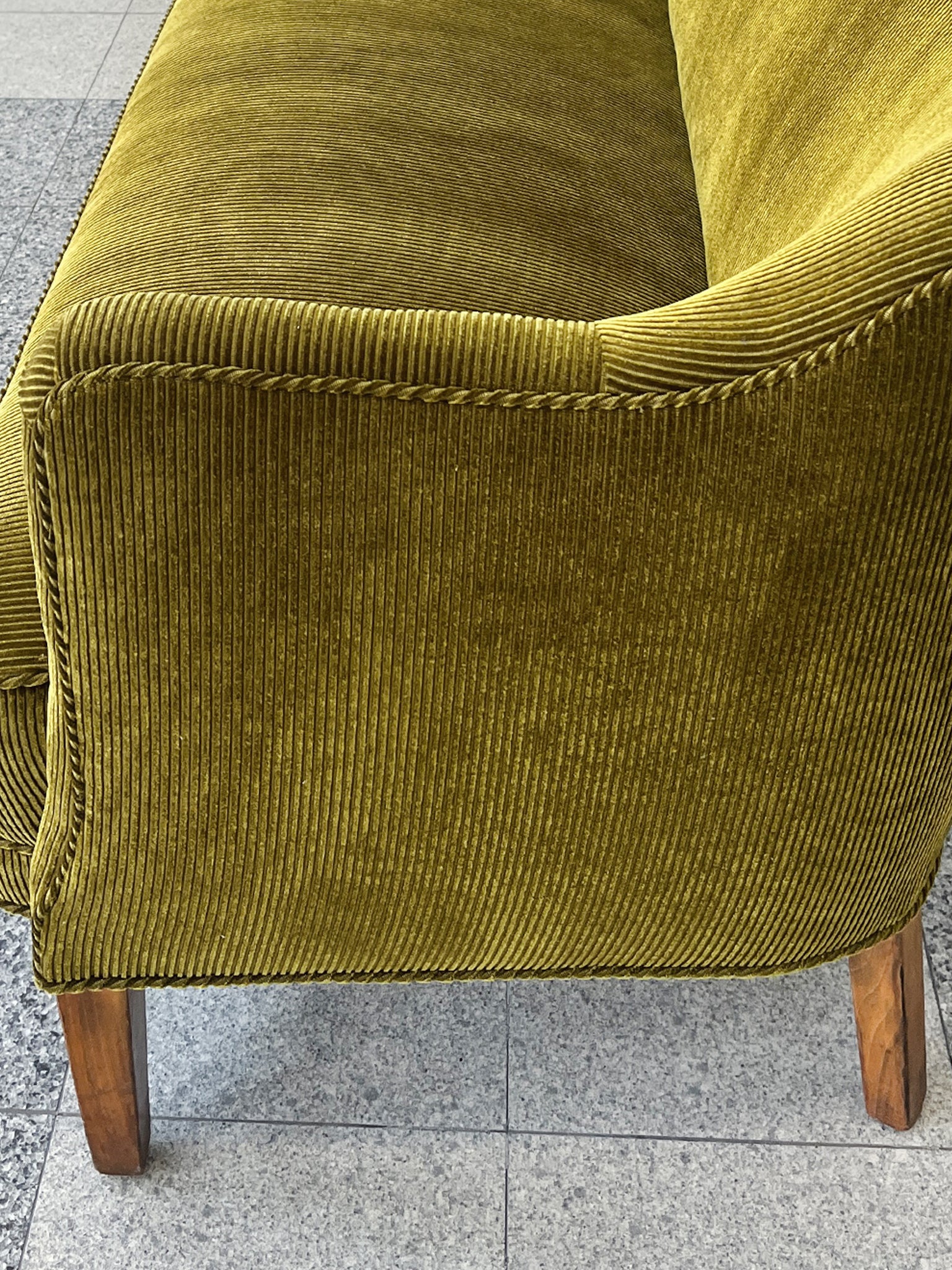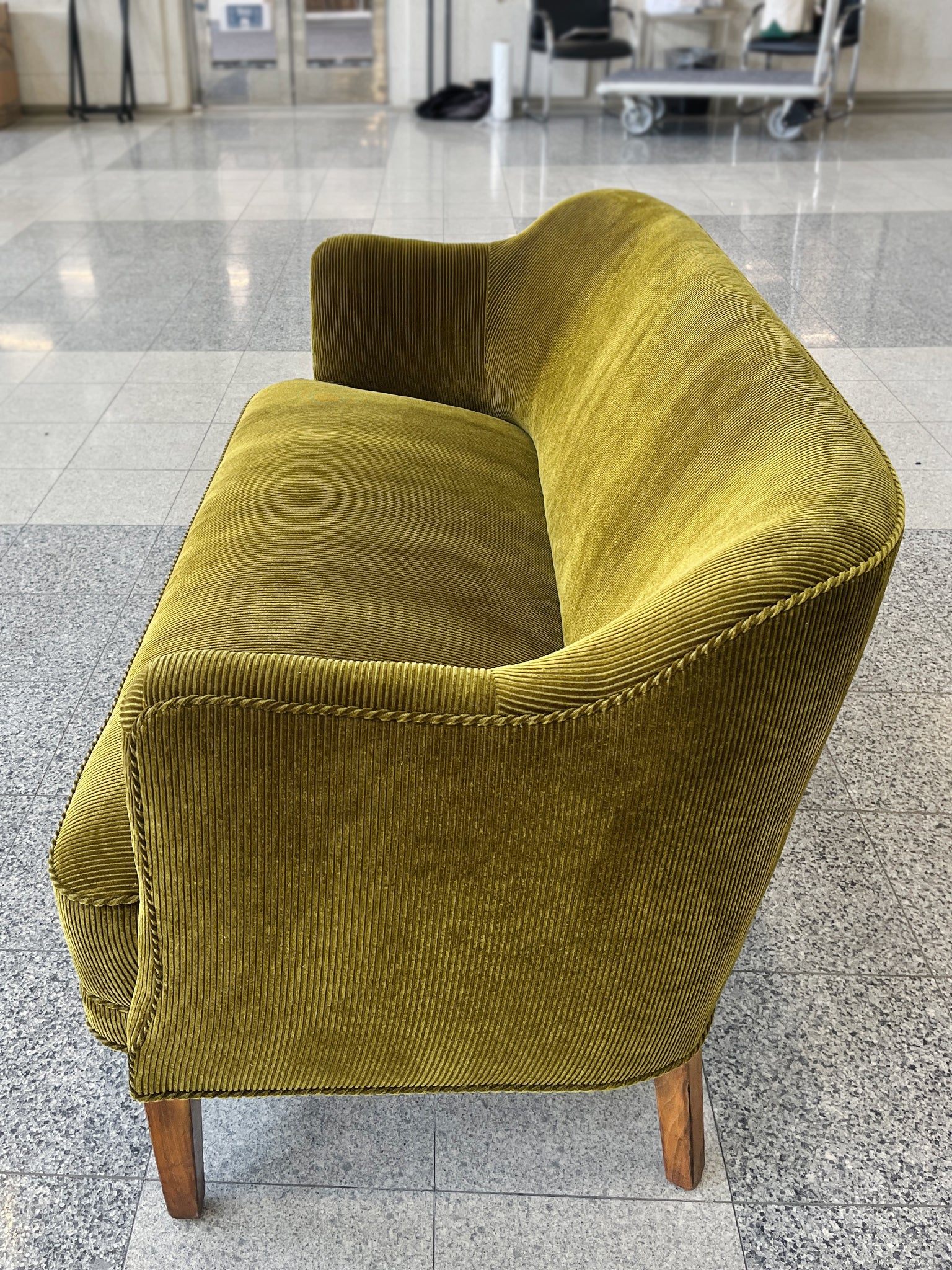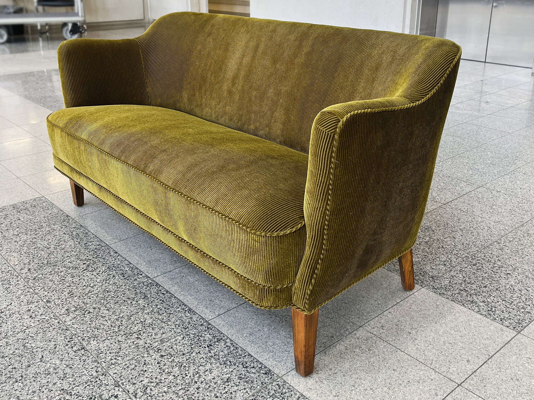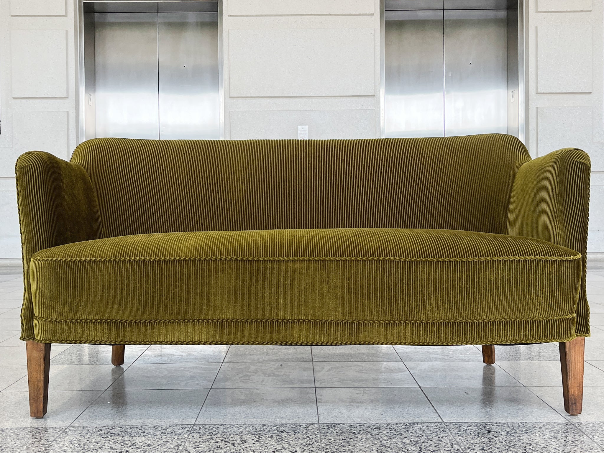 1940s Nanna Ditzel Style Danish Settee, Reupholstered in Green Corduroy