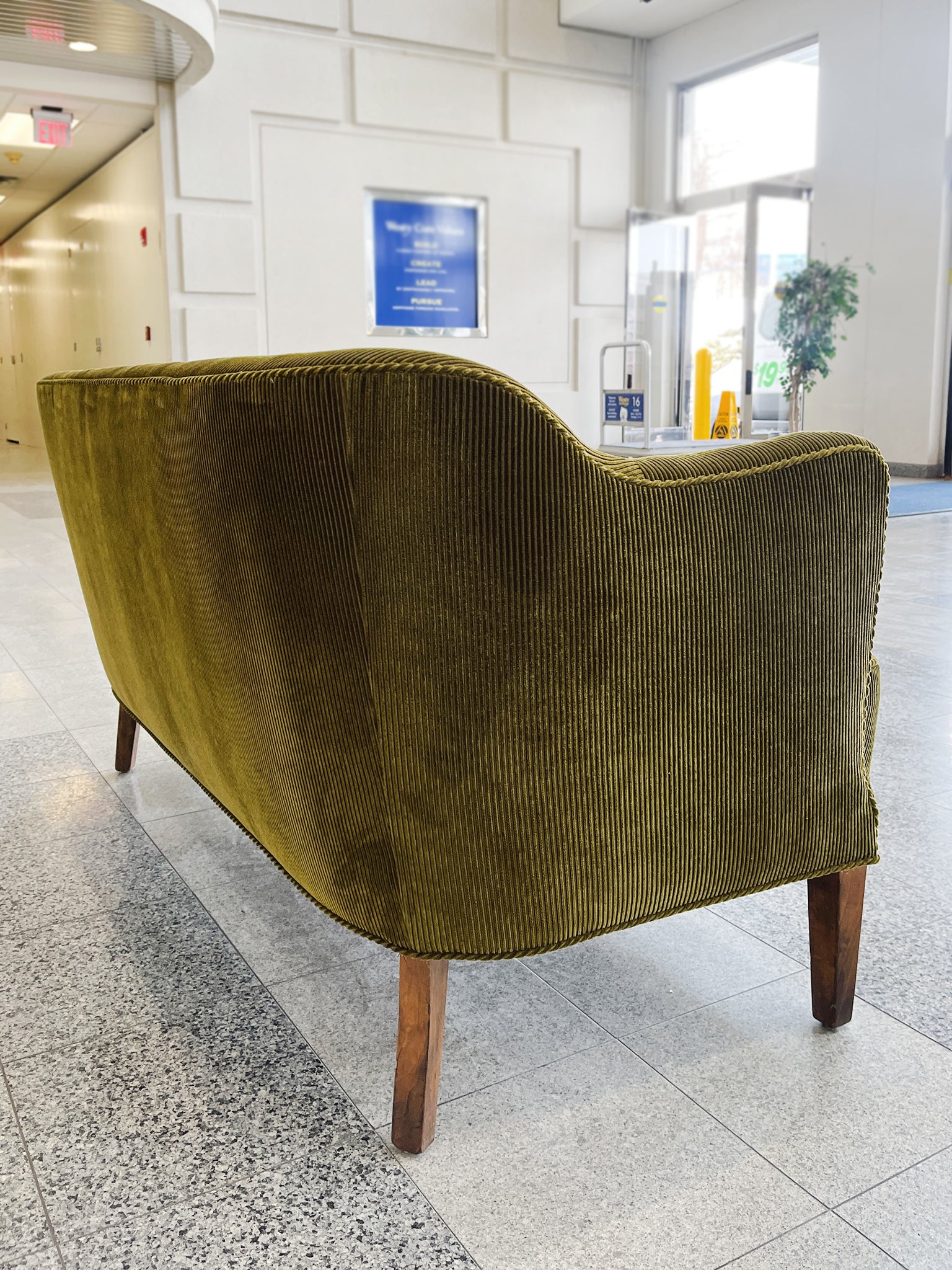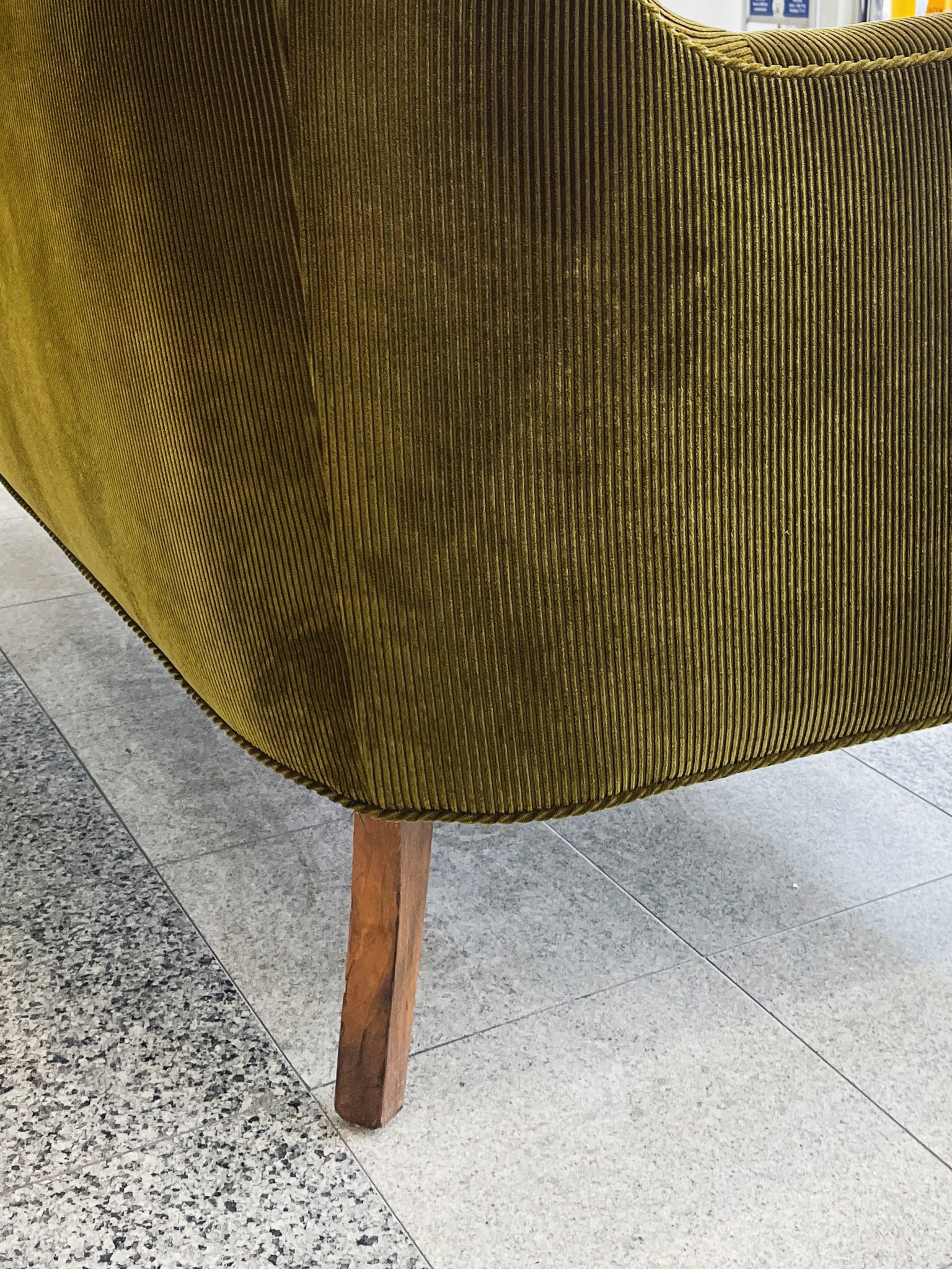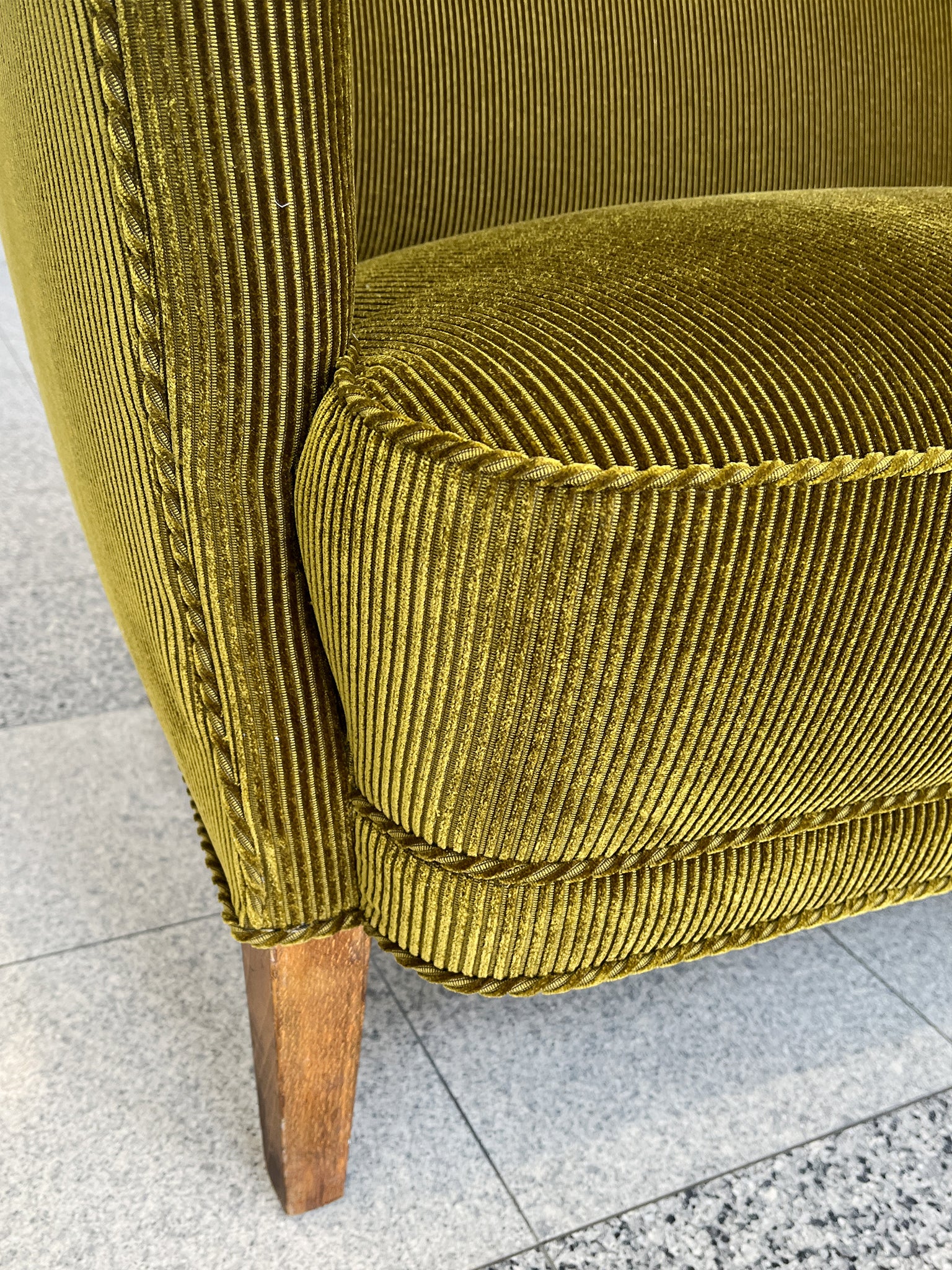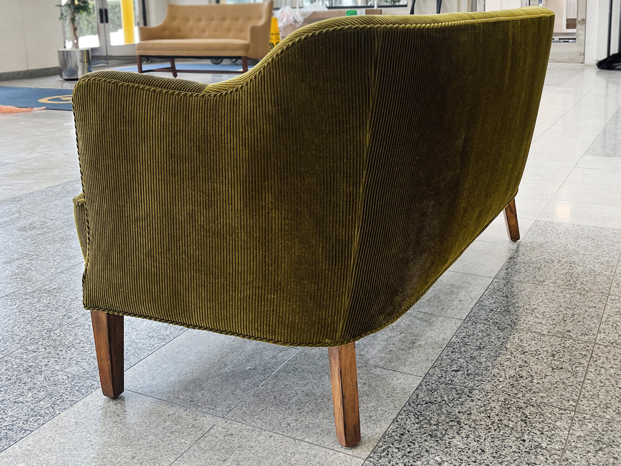 1940s Nanna Ditzel Style Danish Settee, Reupholstered in Green Corduroy