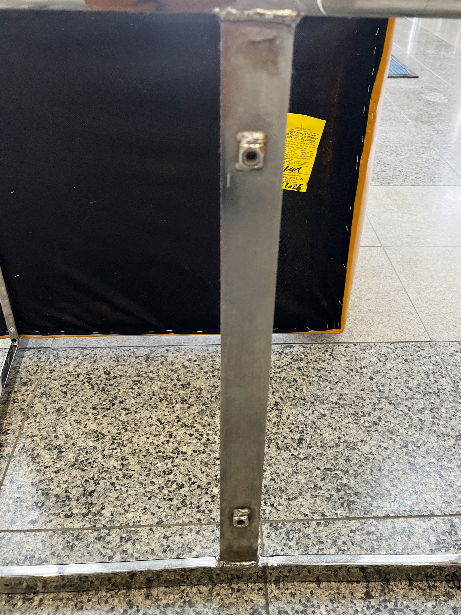 In overall very good condition with general surface wear to the chromed steel legs that are consistent with the chairs' age and use. New leather upholstery and new underside webbing.