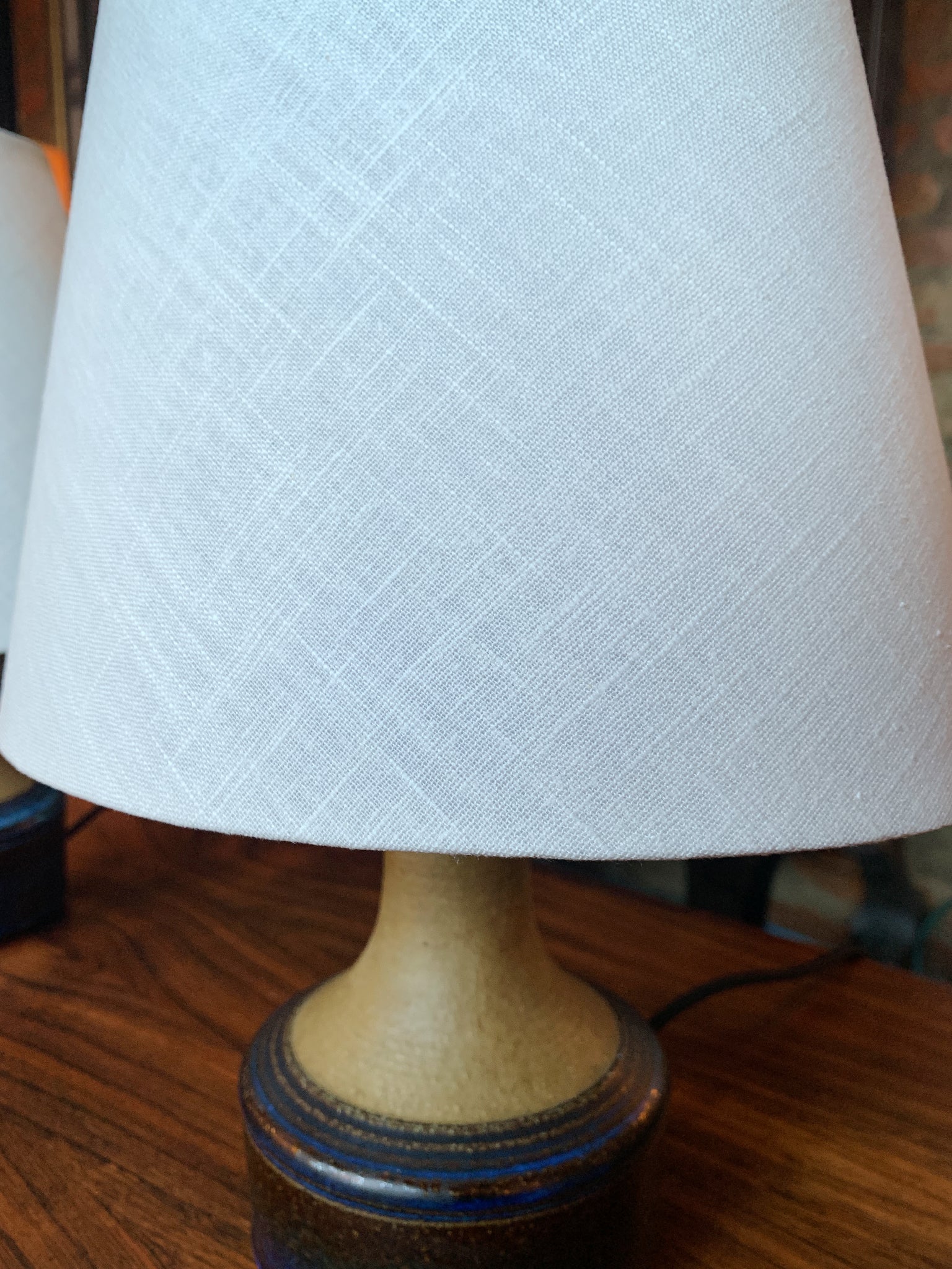 Made in the 1940s, these exquisite table lamps consist of handblown glass bodies, brass bases, and new matchstick shades. The Murano glass has an elegant swirl pattern that gives the surface a sense of movement. Structurally, the body has a...