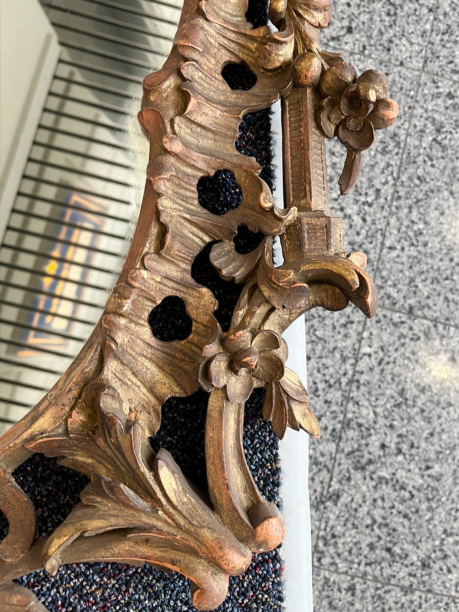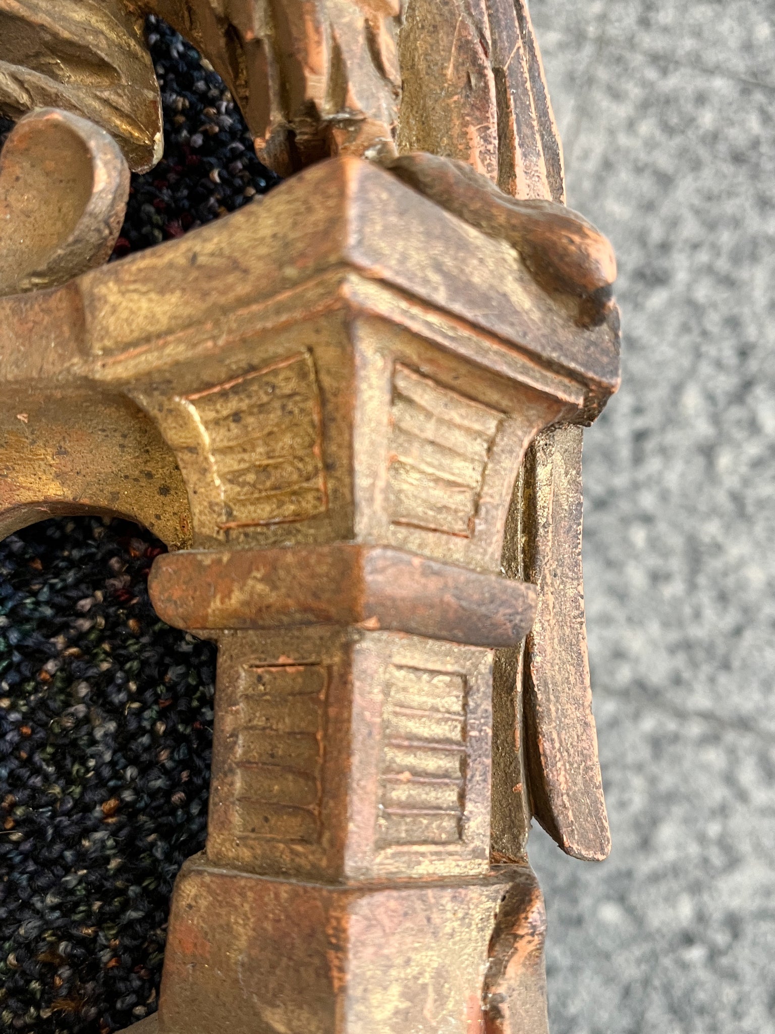 An antique French brass-framed wall mirror made in the 19th Century. Simple, understated with just the right amount of glitz, the mirror has aged well over the years. It is wired to be positioned vertically on the wall, but you...