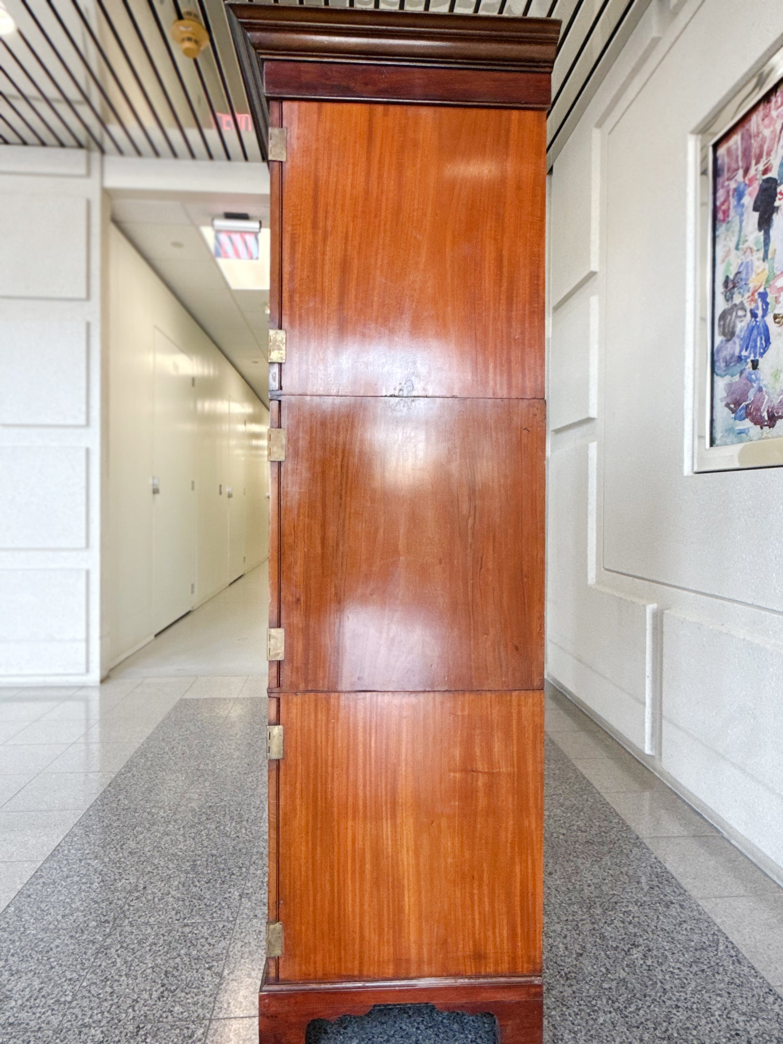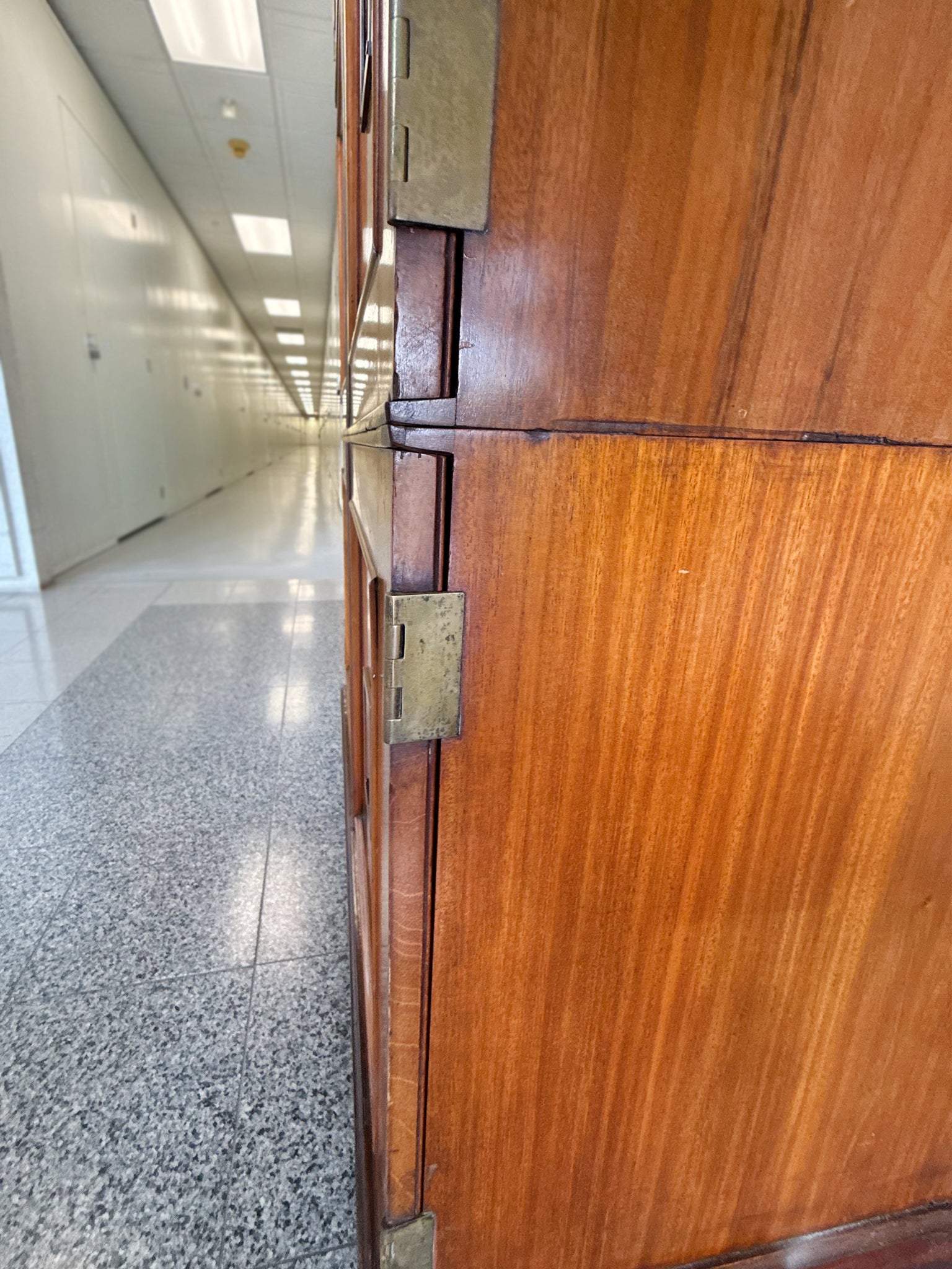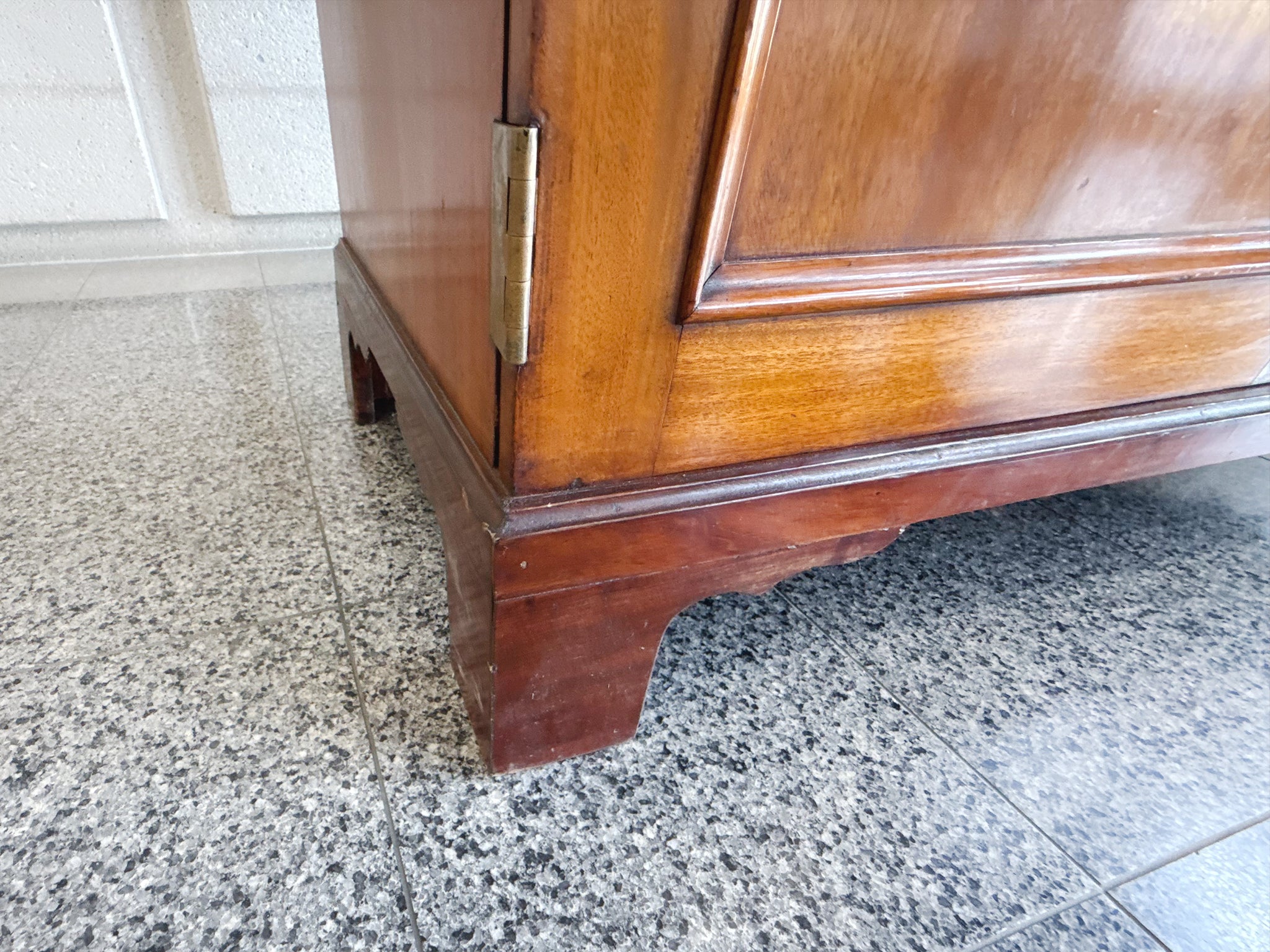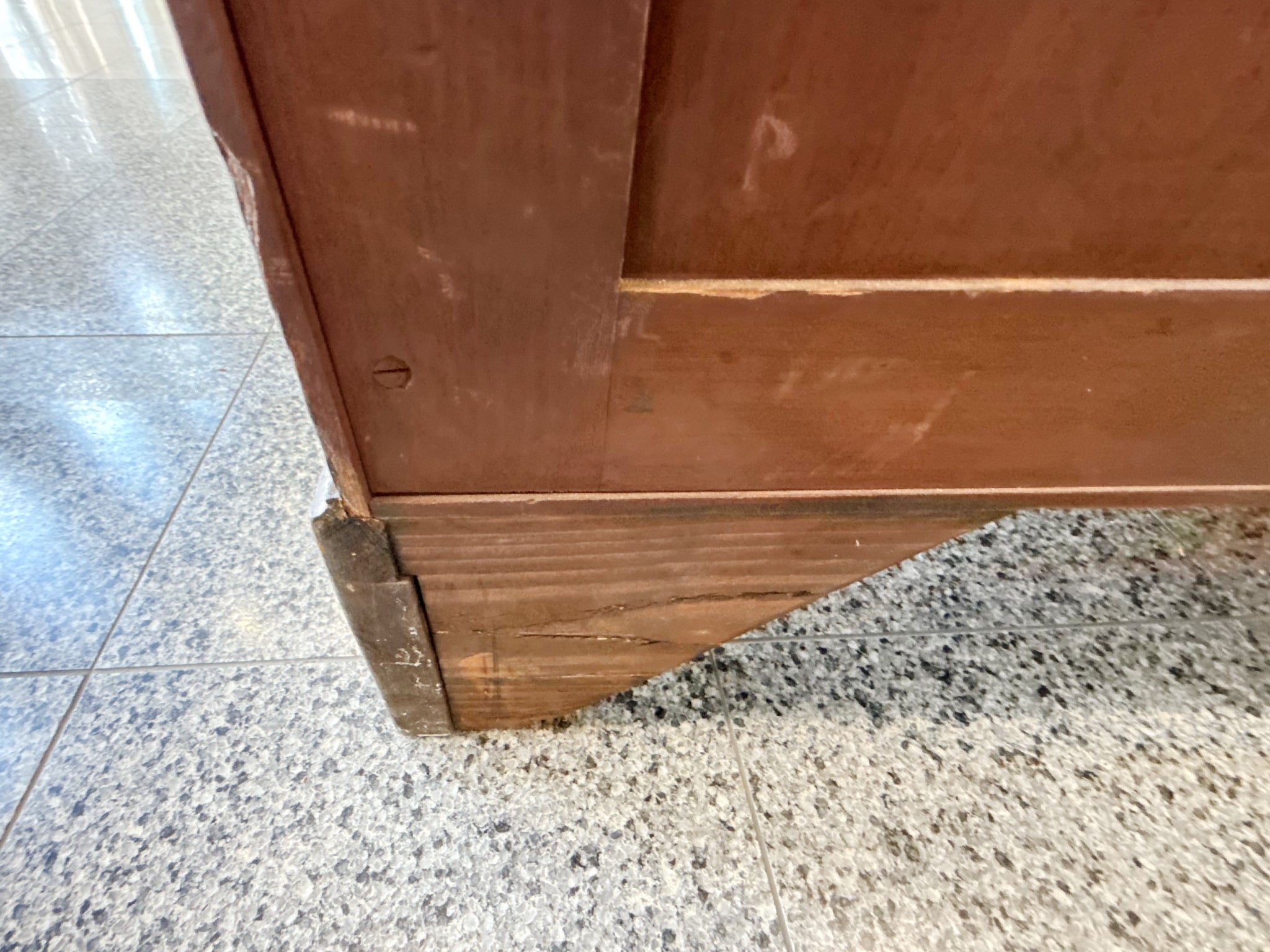 In overall good condition and structurally sound with general surface wear to wood that's consistent with the cabinet's age and use. As mentioned above, the cornice and base were a later addition.