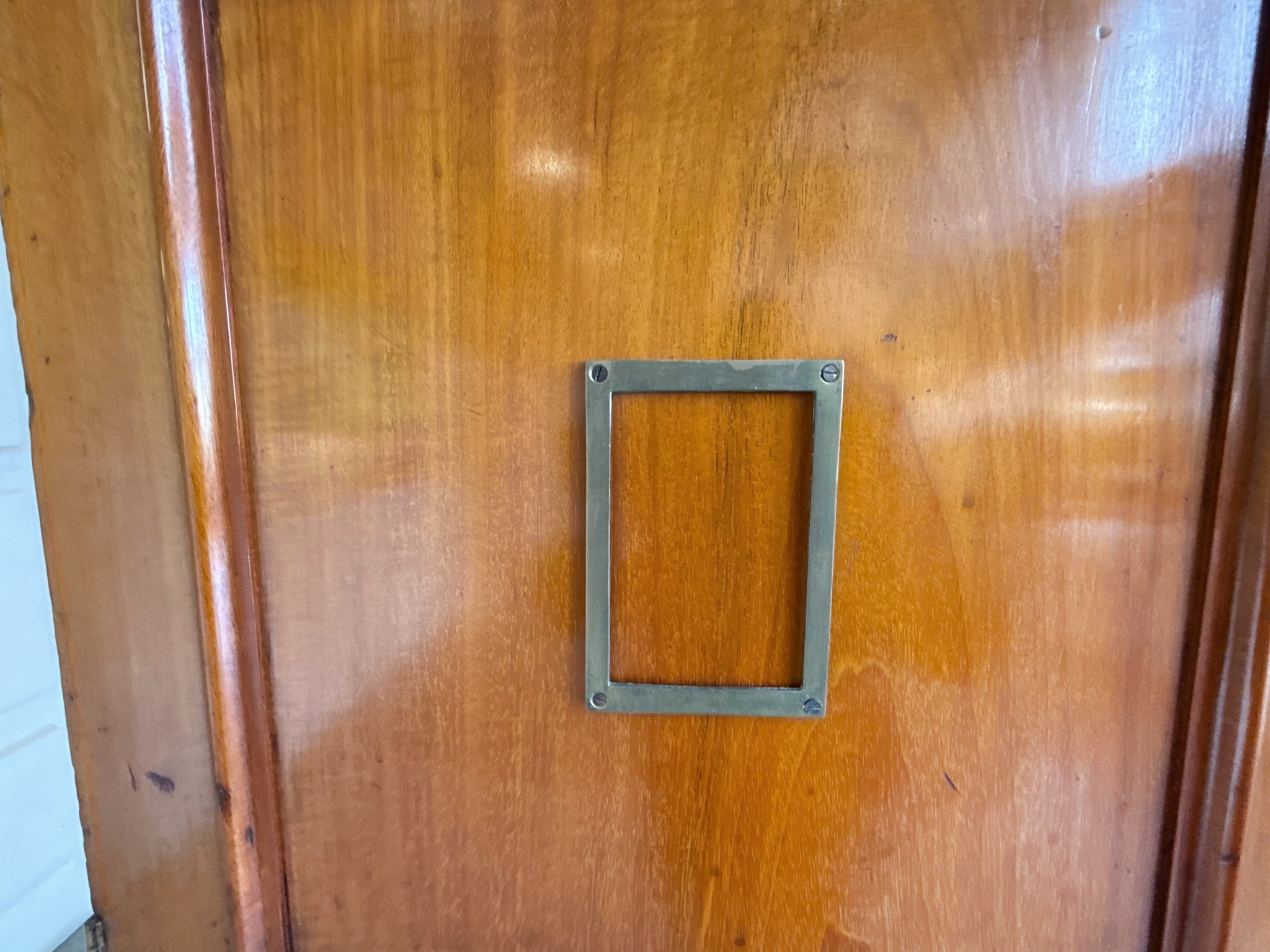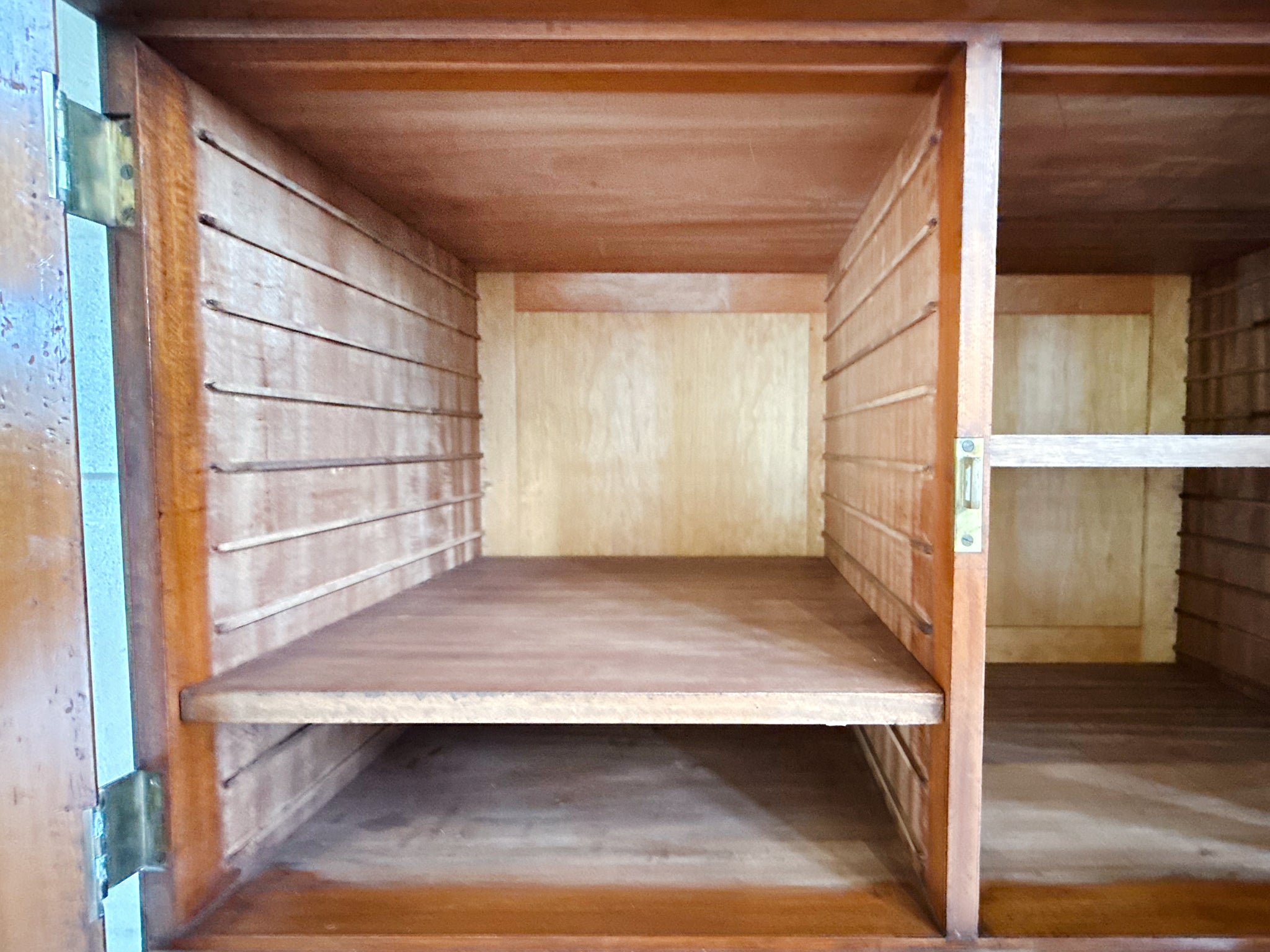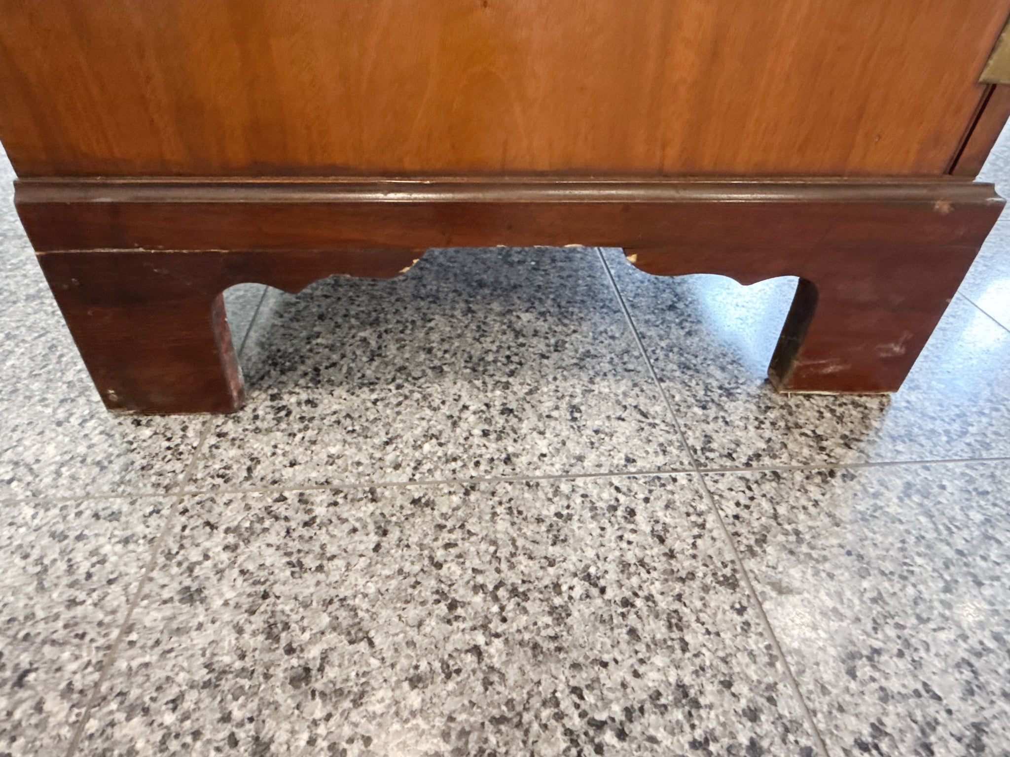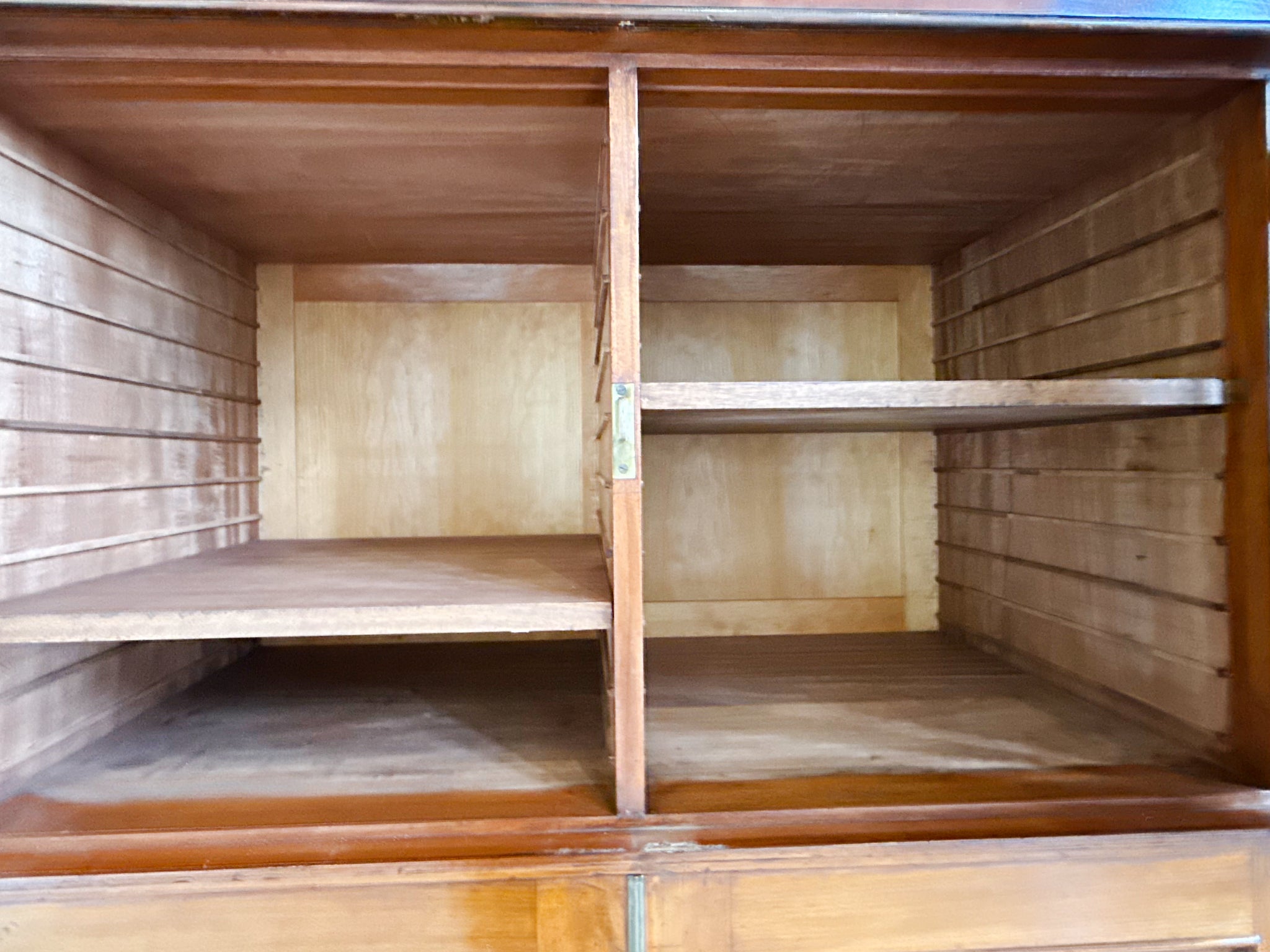 In overall good condition and structurally sound with general surface wear to wood that's consistent with the cabinet's age and use. As mentioned above, the cornice and base were a later addition.