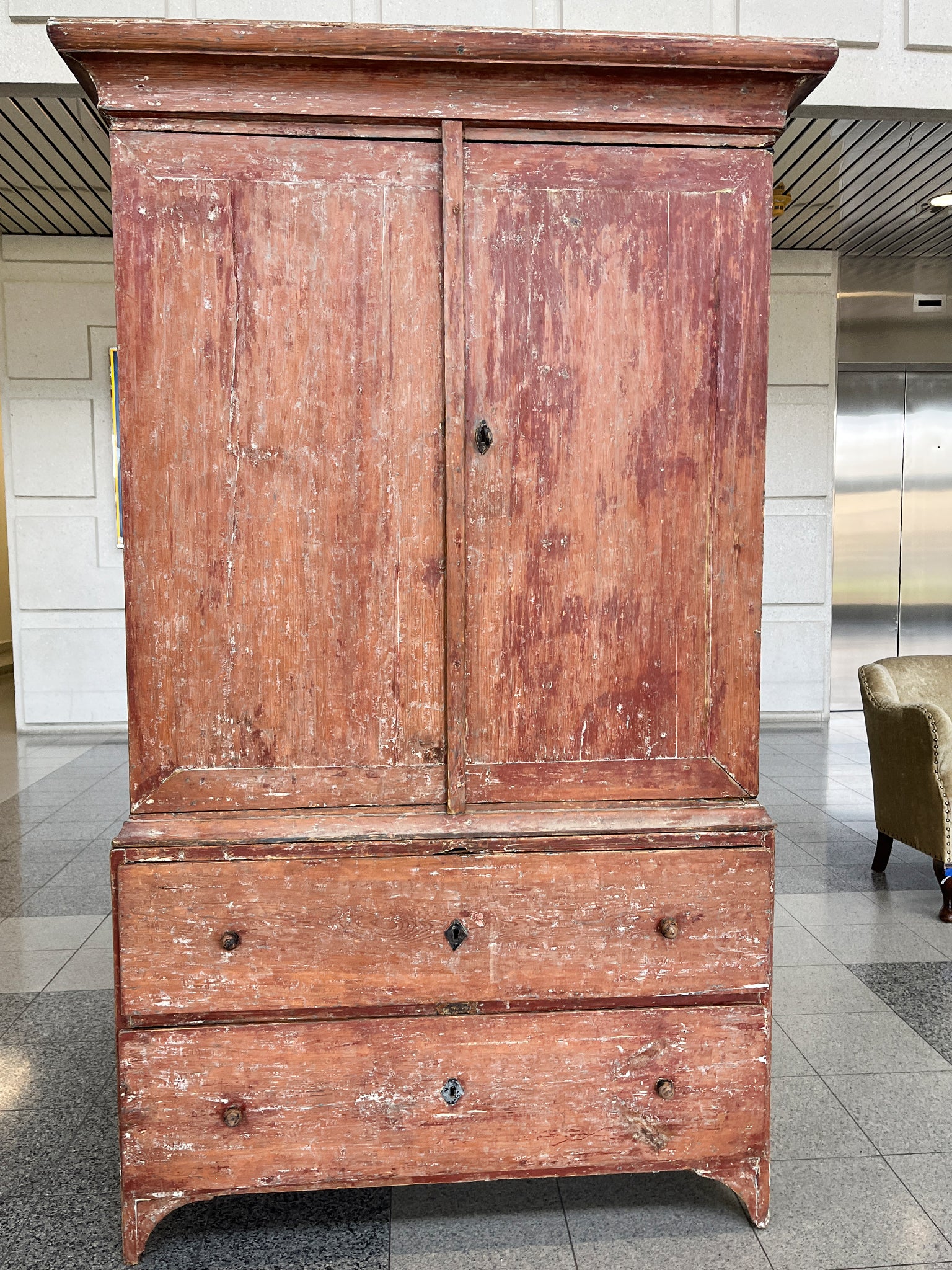 This hand-crafted Victorian mahogany cabinet was made in the Late 19th Century. Departing from more ornate designs typical of Victorian furniture, the chest is characterized by simple, straight lines. There are six doors designed with recessed facades, each trimmed with...